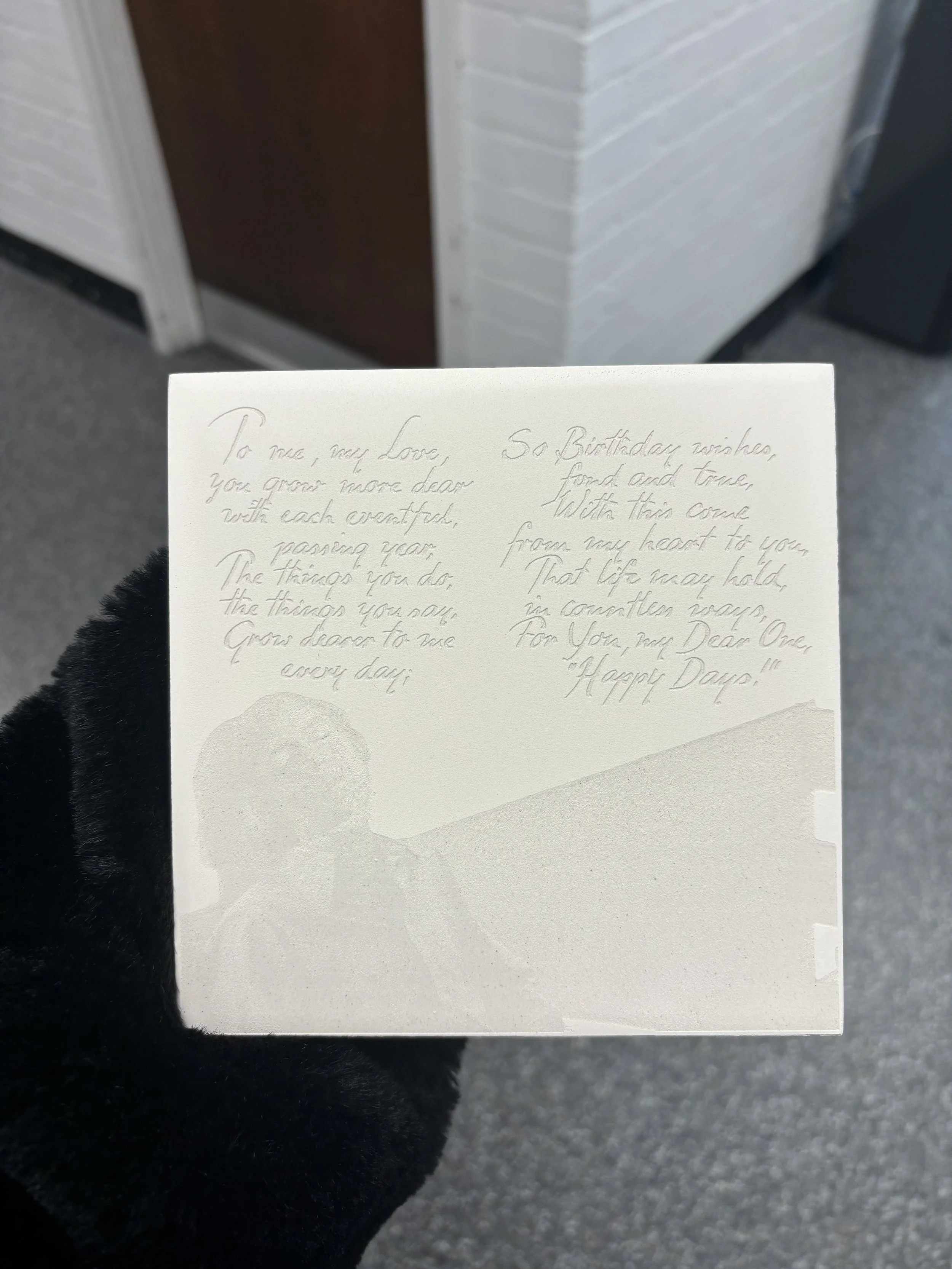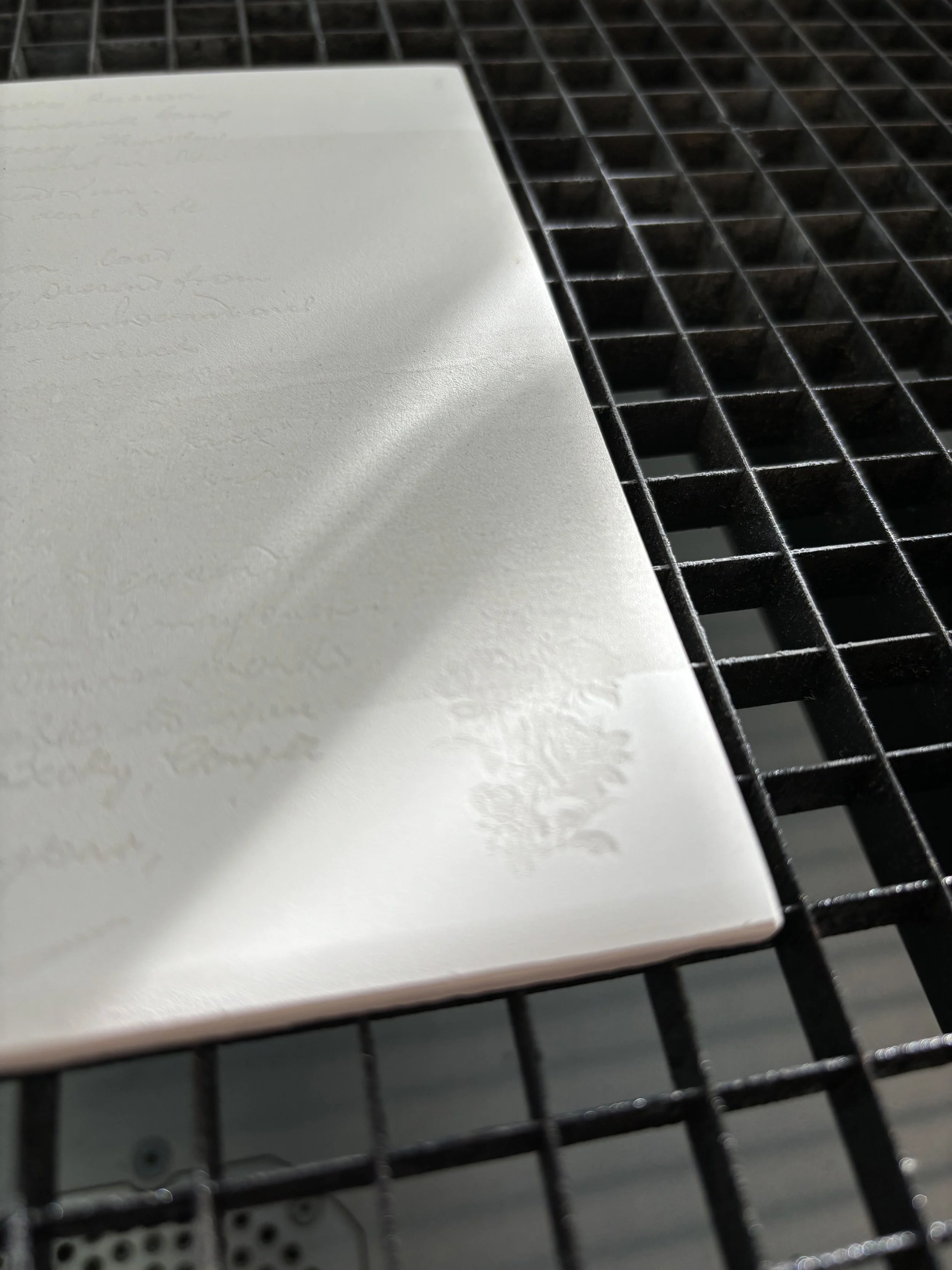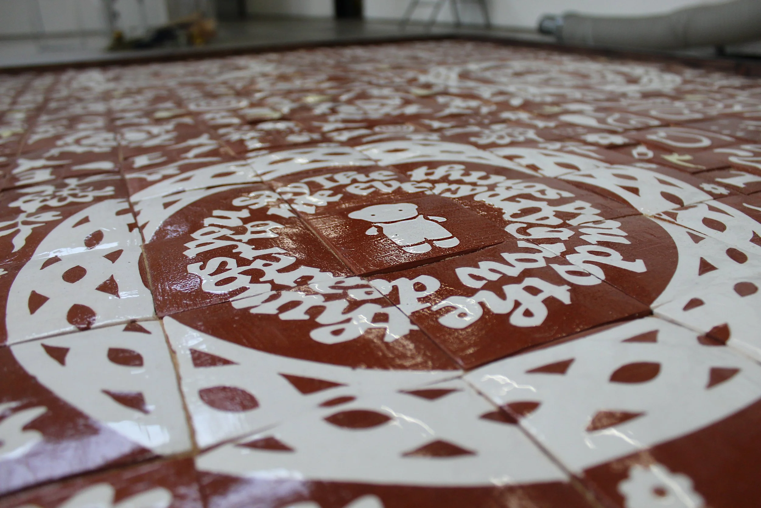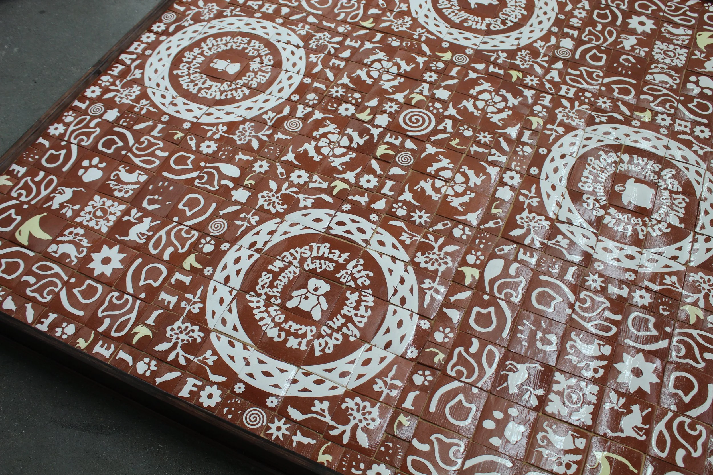 Jelf’s work draws from personal history, sentimentality, and domestic ritual, often incorporating inlaid tile-making and archival imagery to explore memory, identity, and emotional inheritance. Her use of historically accurate medieval techniques is central to her practice, allowing her to create contemporary artefacts that straddle both personal narrative and collective tradition.