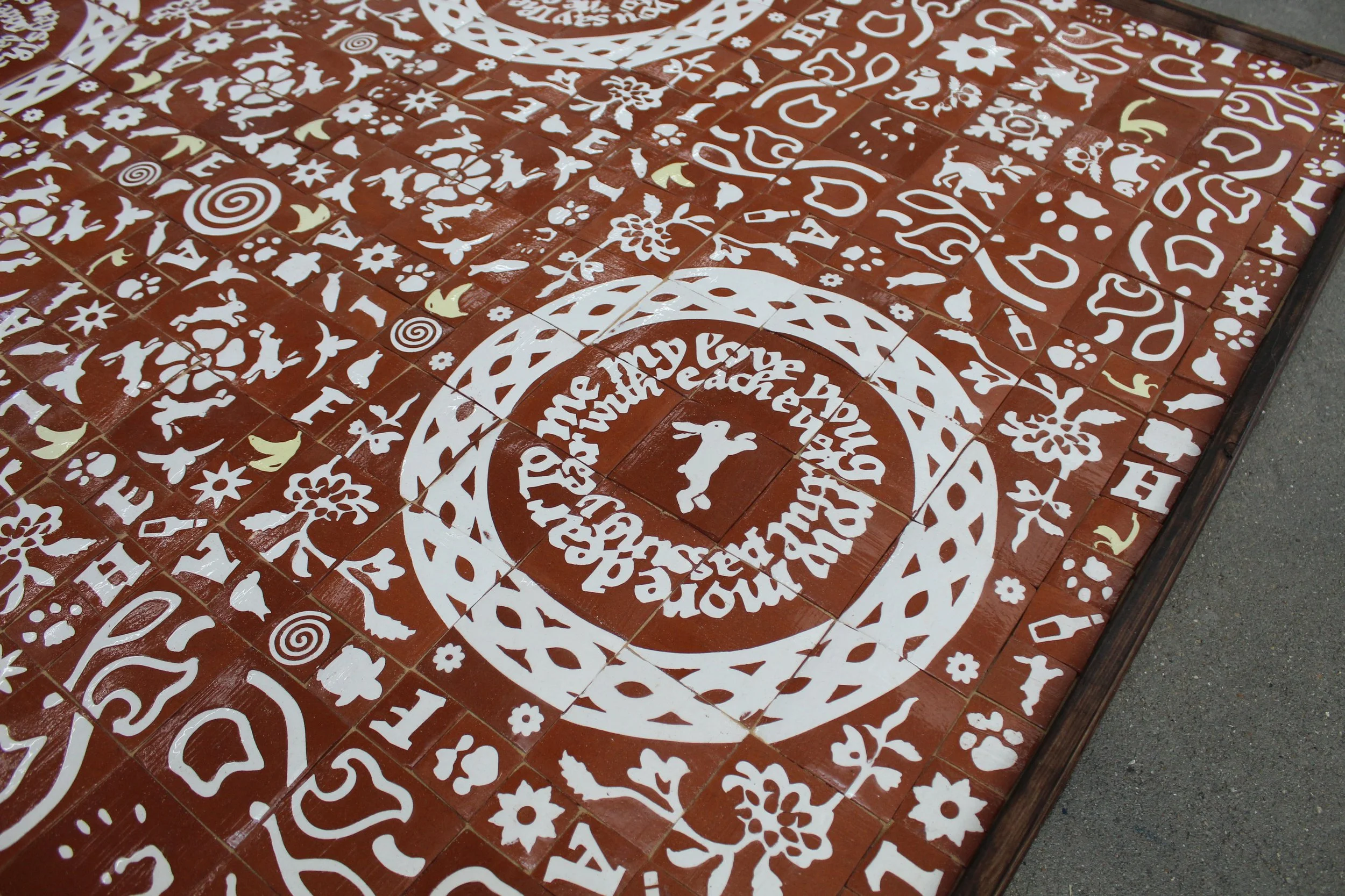 By employing historically accurate processes, the work establishes a tangible connection to the past, while simultaneously subverting its conventions. The tiles depict intimate narratives that speak to memory, identity, and emotional inheritance, playing with tone and texture to consider how the past imprints itself on the present, particularly in relation to trauma, memory, and sentimentality. The use of repetition and floor-based installation reflects the original function of priory tiles yet transforms them into sites of contemporary storytelling.