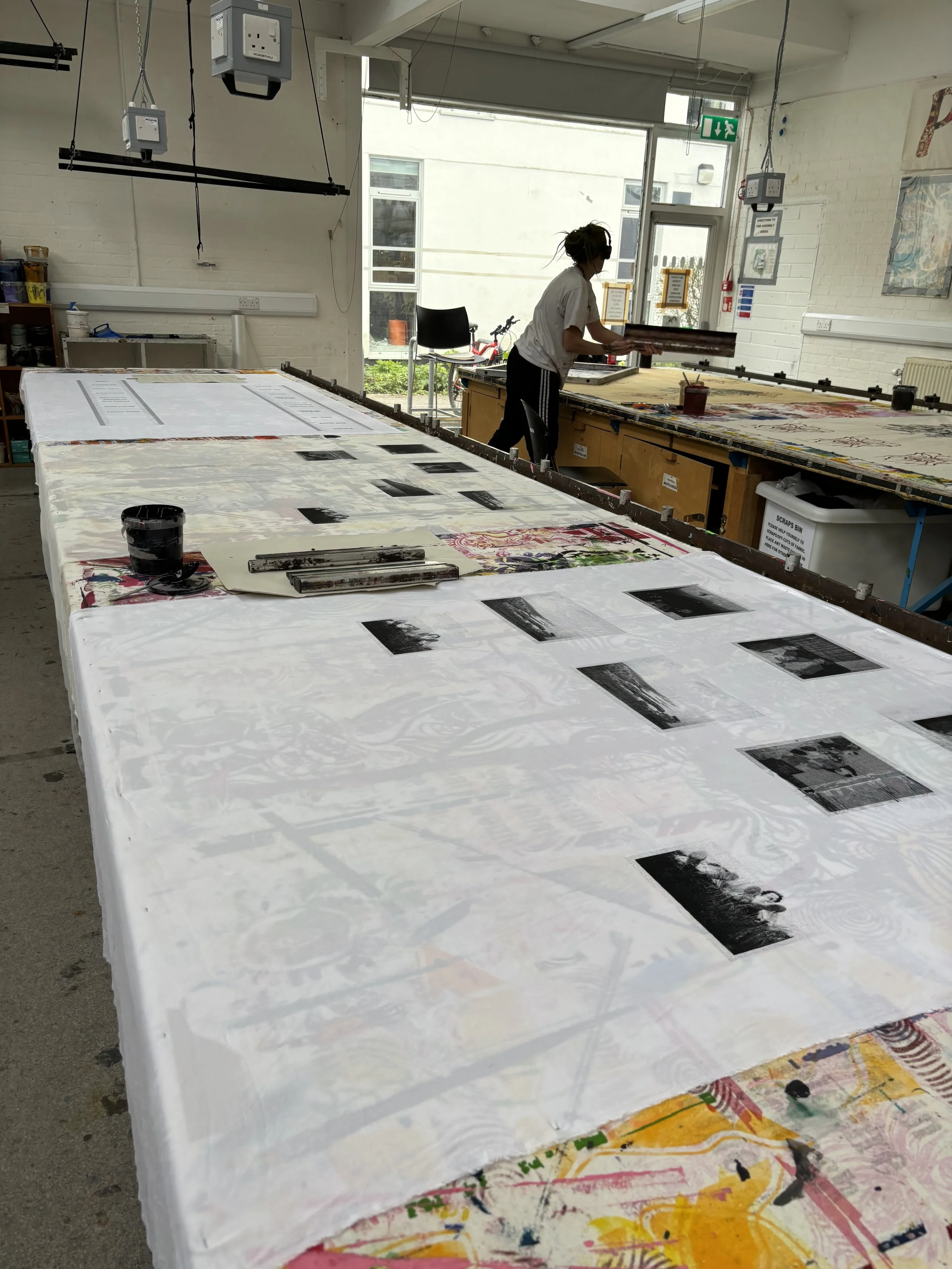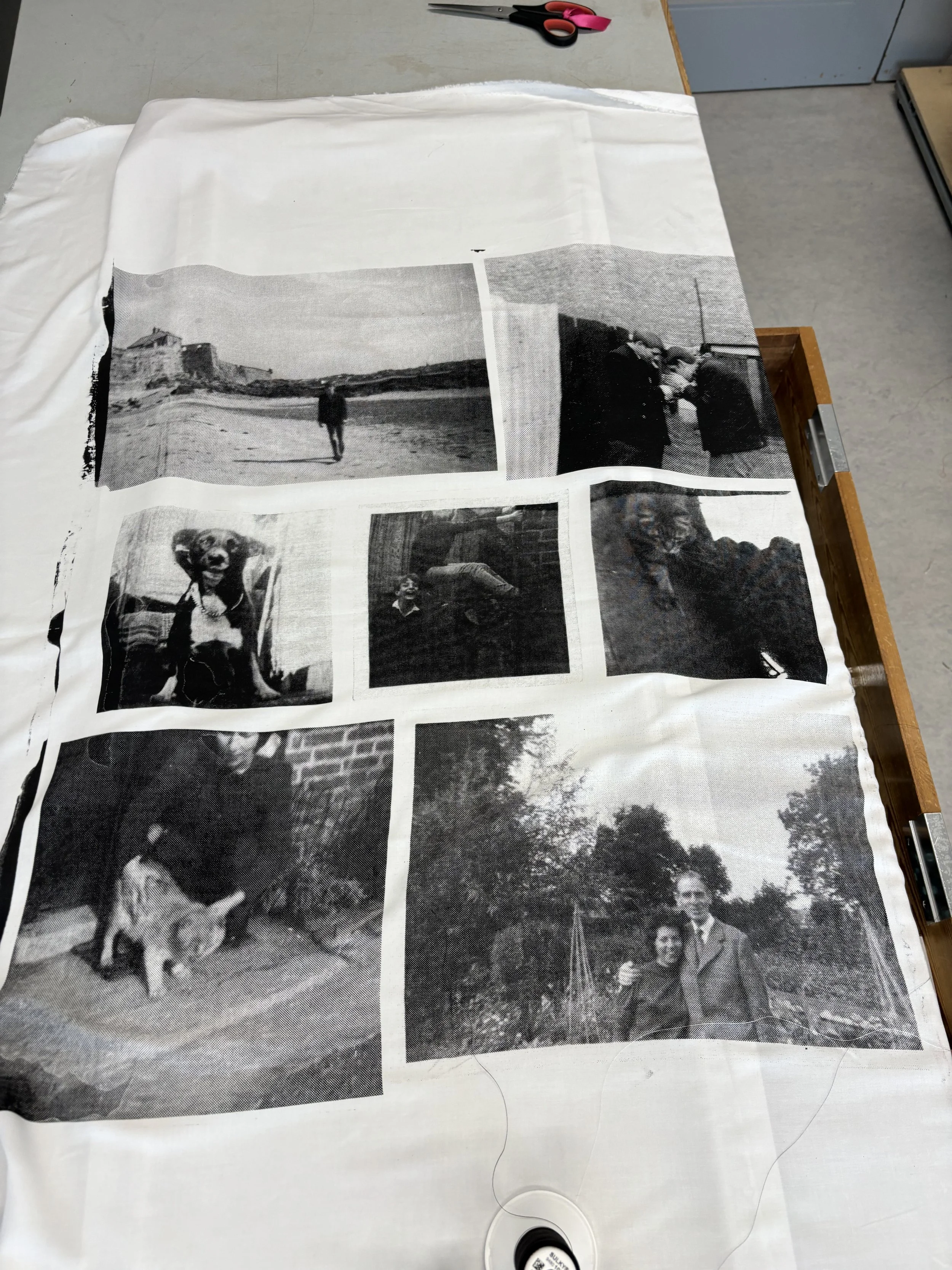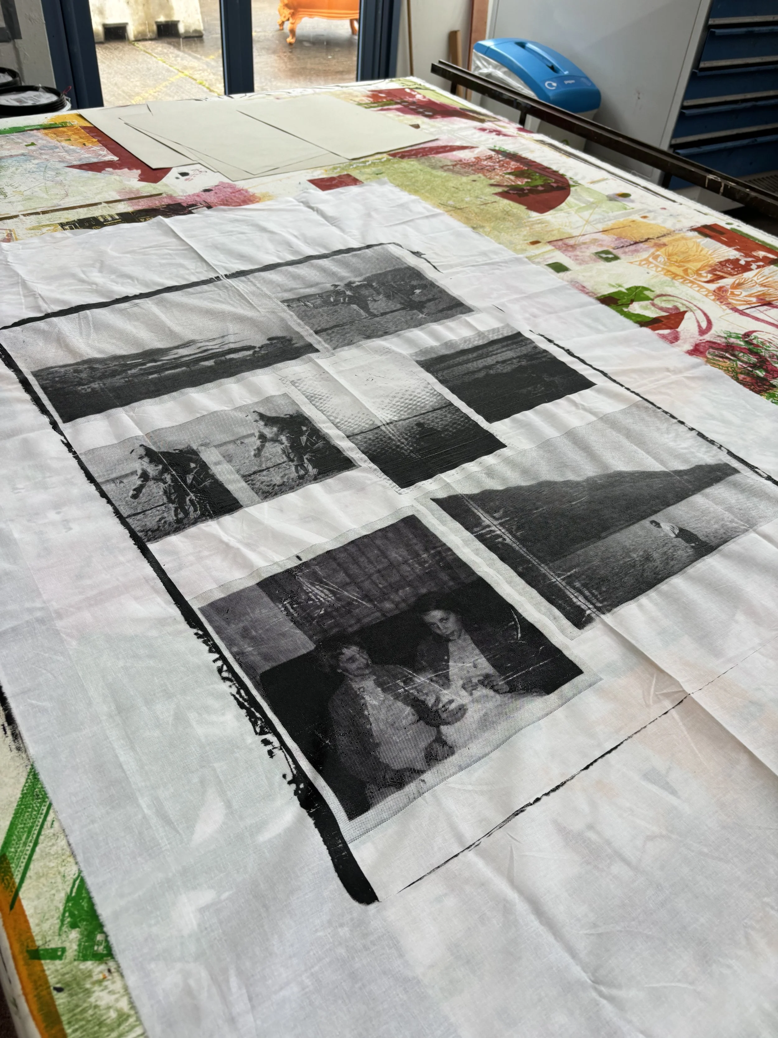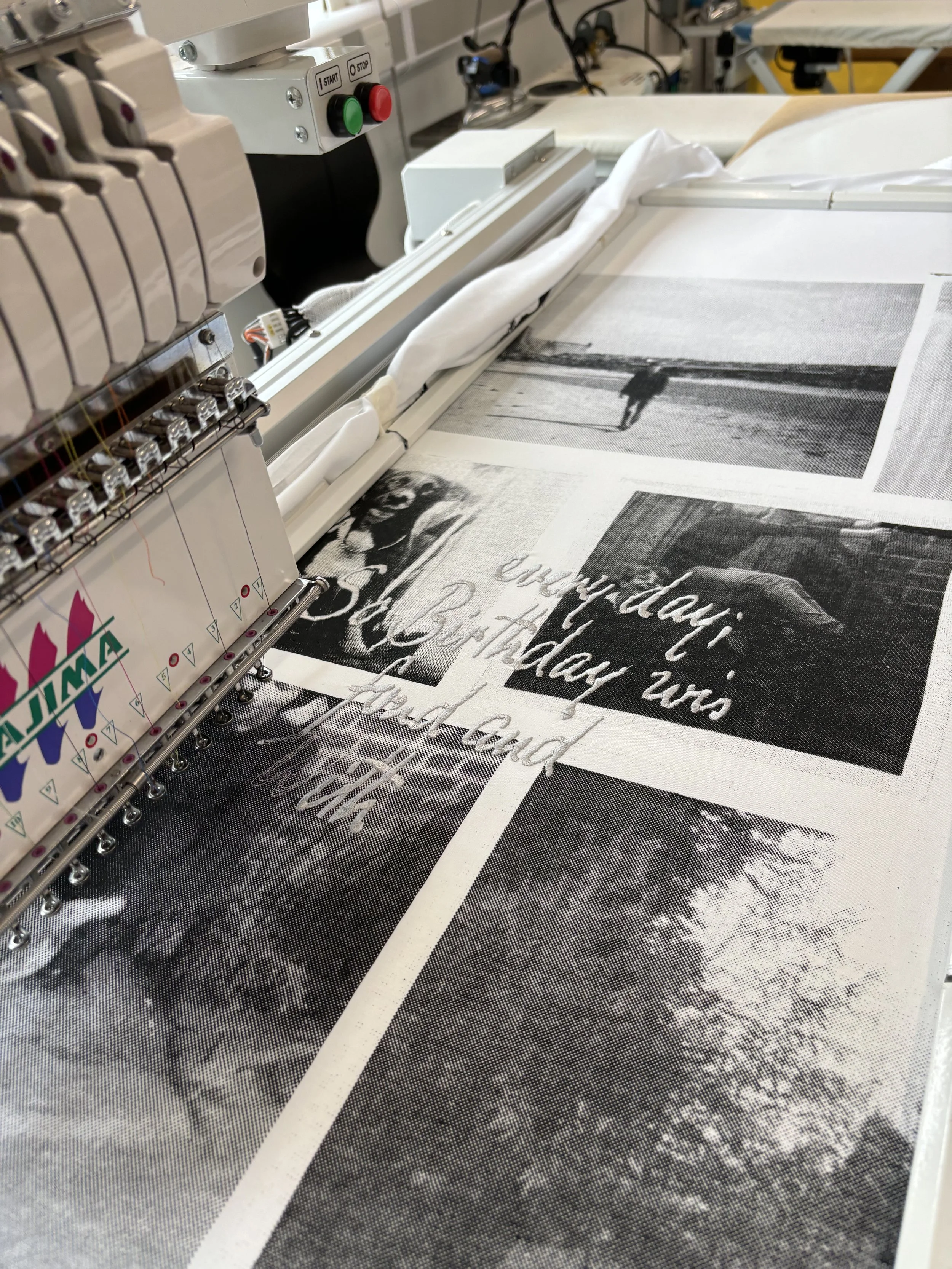 Shelter is an installation comprised of two bodies of work: Family Vessels, a collection of slip-cast vessels, and a series of hand-printed and embroidered tapestry works supported by a wooden frame in the shape of a house. Family Vessels acts as a physical representation of family and, in turn, how this informs identity. The tapestry works serve as a fabric that envelops the house to create a home, exploring how this can be both a comforting and suffocating presence in one’s life; yet a necessary shelter.